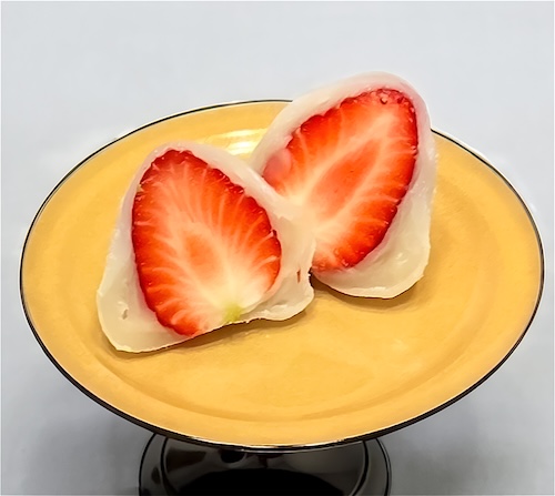 果汁たっぷりの茨木産イチゴがふわふわの大福になりました! 自家製粒あんと白あんの2種類でご用意しております。