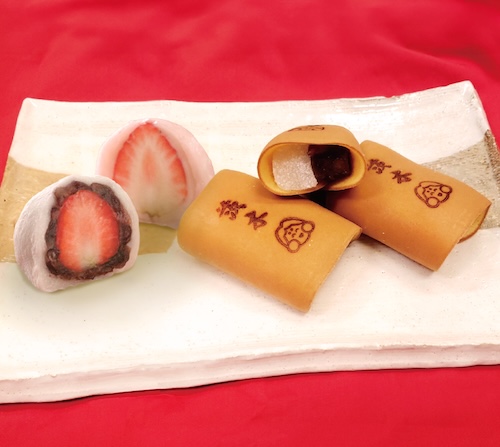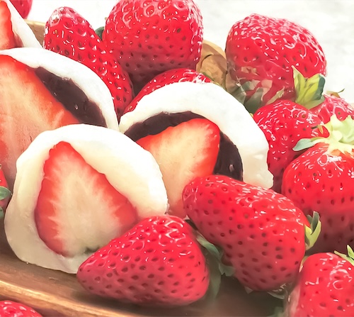 冬から春にかけて人気のイチゴ大福は、粒あん・白あんの2種類があります。